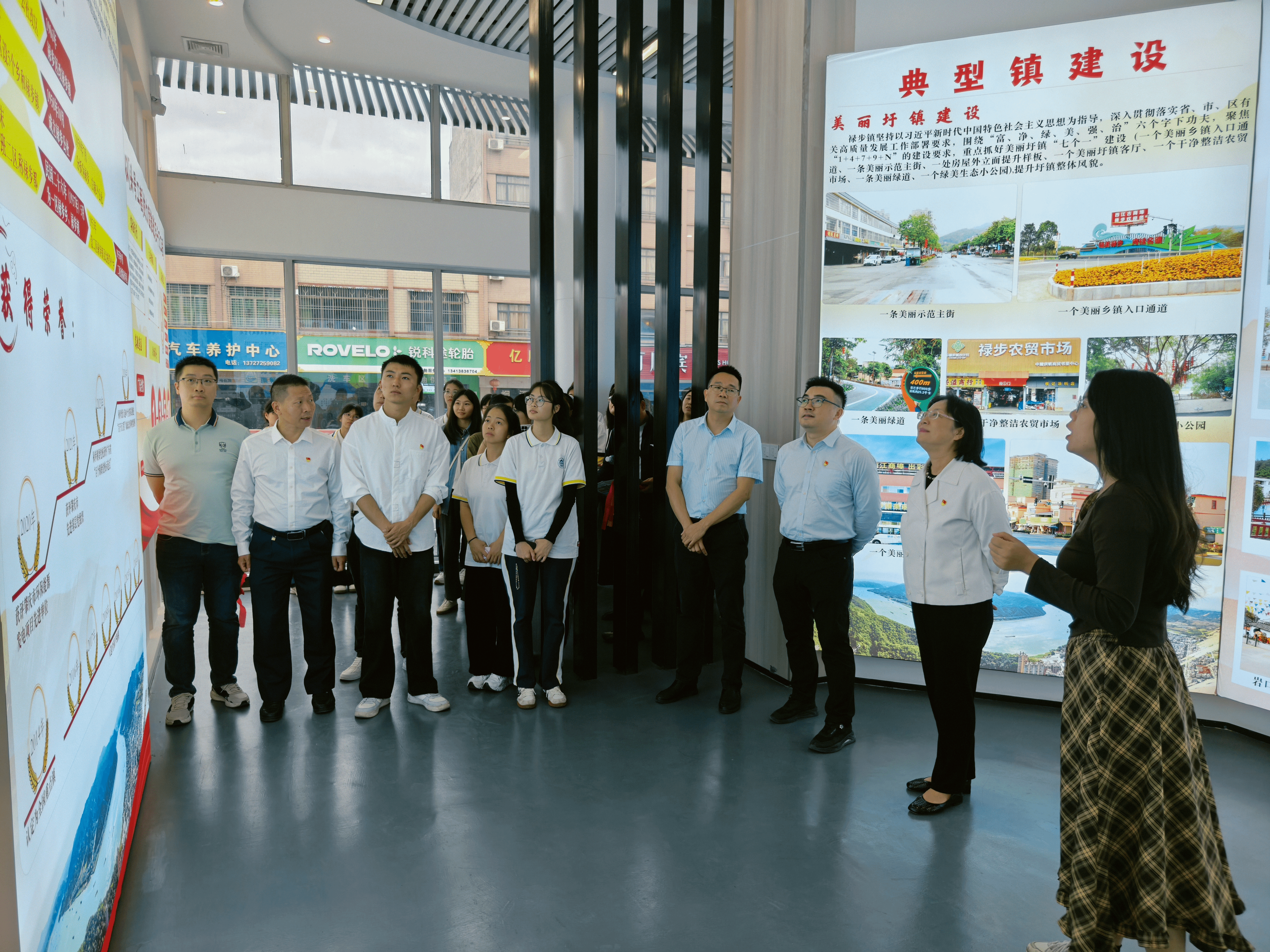 师生党员代表首先来到禄步镇美丽圩镇客厅。这里是禄步镇打造的乡村振兴展示窗口,集文化、产业、公共服务于一体,设有农产品展销直播间、百册书室阅览区。通过参观,大家对禄步的镇村历史、自然文化以及乡村振兴成果有了全方位了解。
