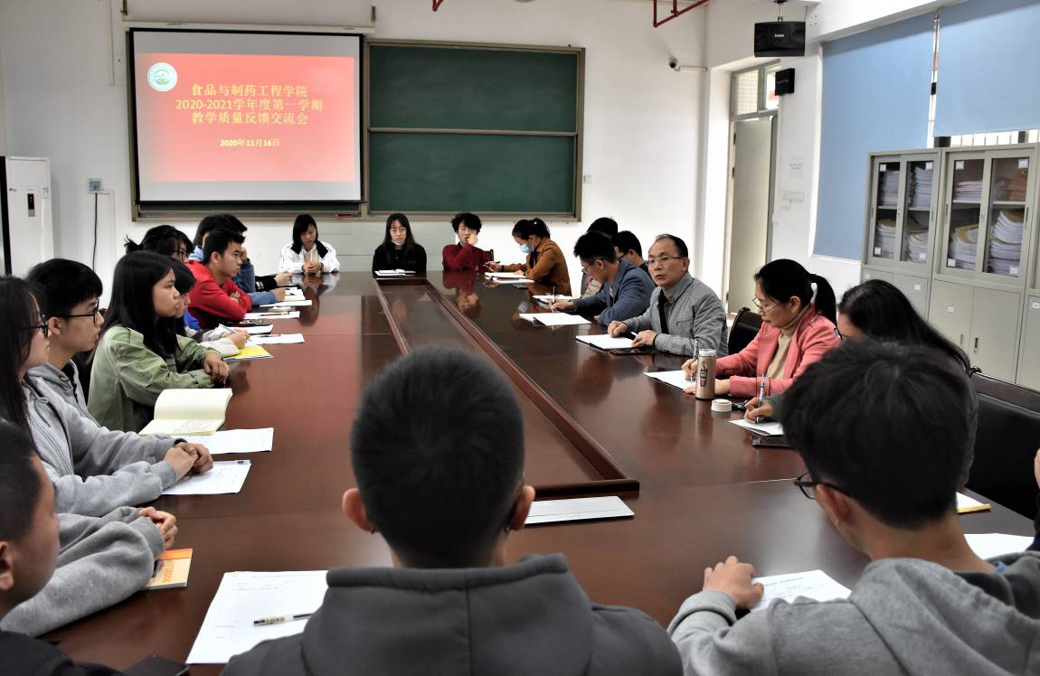 为进一步提高我院教学质量和教学效果,及时梳理反馈教学过程中的教与学情况,11月16日下午,我院于理工楼425室召开了2020-2021学年度第一学期教学质量反馈交流会,参加会议的成员有我院副院长马德运、党委副书记蔡振治、教学督导组长吴秀兰、教学督导委员赵建芬、路宽、实验室主任刘钊等相关老师,以及18、19、20级各班班长、学习委员等。会议由副院长马德运主持。