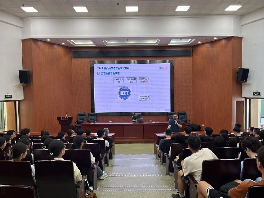 石文向新生详细介绍了专业发展历程、师资力量、教研成果、人才培养计划、课程体系、毕业生就业、考研等方面内容。刘永向学生分享了食品科学与工程专业发展的最新动态、食品行业需求、实际应用价值和发展潜力。多位专业课教师以各自的研究方向和教学经验,向新生们展现了丰富多彩的分享,使学生深入了解所学专业的就业前景和职业发展路径,从而明确自身的职业目标和努力方向。