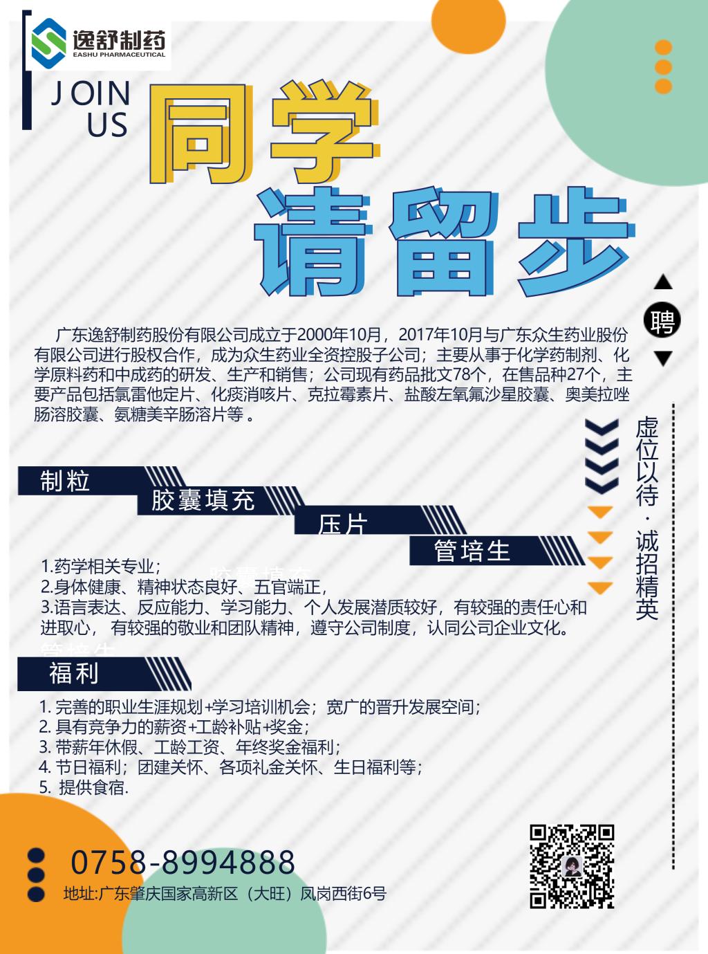逸舒制药招聘