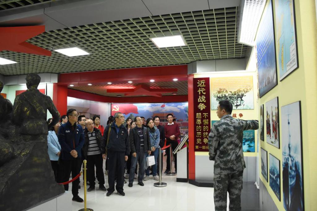 接着,双方一行前往位于端州区睦岗街道大龙社区的肇庆市国防教育基地进行参观学习。大家在资料展览馆里,跟随着讲解官兵的步伐,依次参观了“近代战争、肇庆革命、人民军队、警钟长鸣、肇庆武装、国防法规”六大主题展厅,重温中国共产党领导人民进行艰苦卓绝斗争的光辉历程,接受守初心、担使命的精神洗礼。同时,党员同志们真切地感受到中华民族实现从站起来、富起来到强起来的历史性飞跃,对中华民族伟大复兴的“中国梦”充满干劲,对中国特色社会主义道路的伟大前景充满自信。走出展览馆,来到武器装备展示区,大家近距离体验了高射炮的操作方法和了解了有关的知识。
