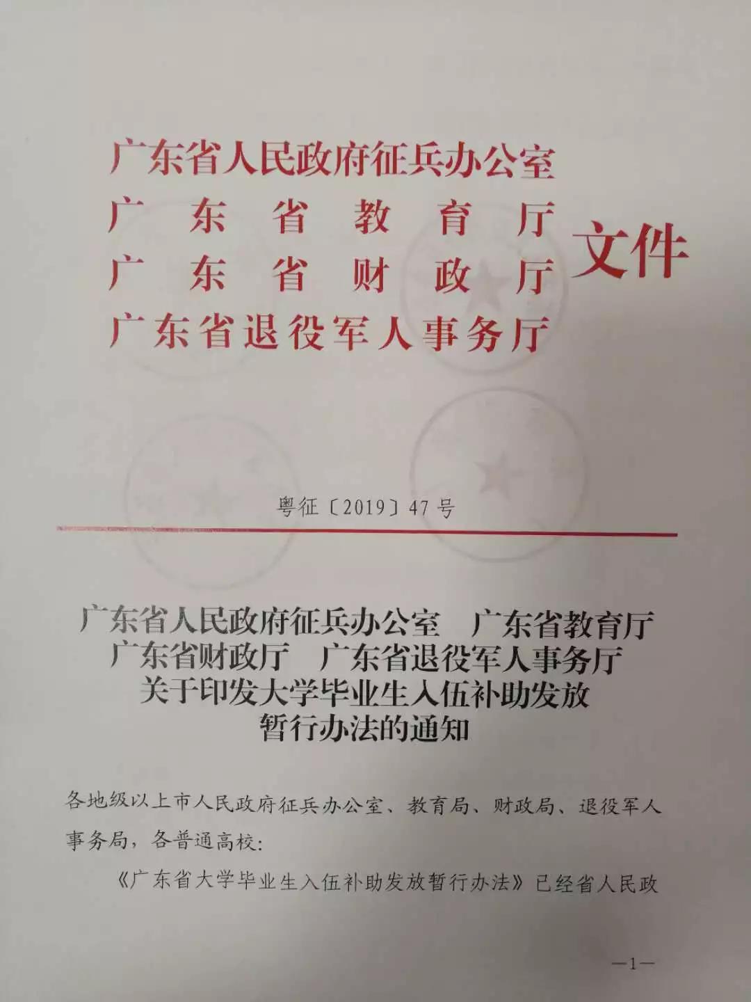广东省大学毕业生入伍补助发放暂行办法