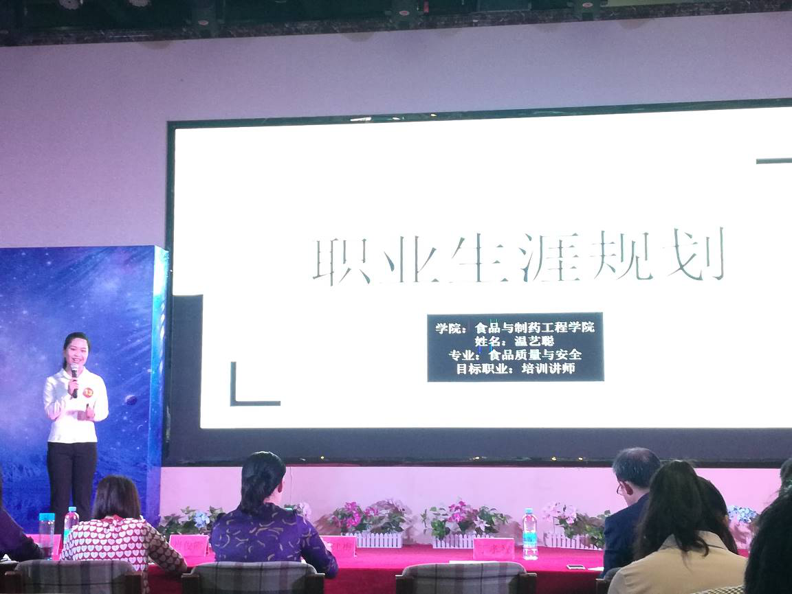 我院两名选手经过学院初赛、校复赛资格选拔,顺利进入决赛。决赛设置了职业规划书作品评比、现场PPT展示和情景模拟三个环节。决赛中,我院选手与其他二级学院选手同台竞技,结合专业特色,描绘了一幅别具一格的职业蓝图,他们职业目标明确、路径清晰,演讲语言流畅、热情饱满,赢得了评委和现场观众的阵阵好评,充分地展示了我院学子的风采。