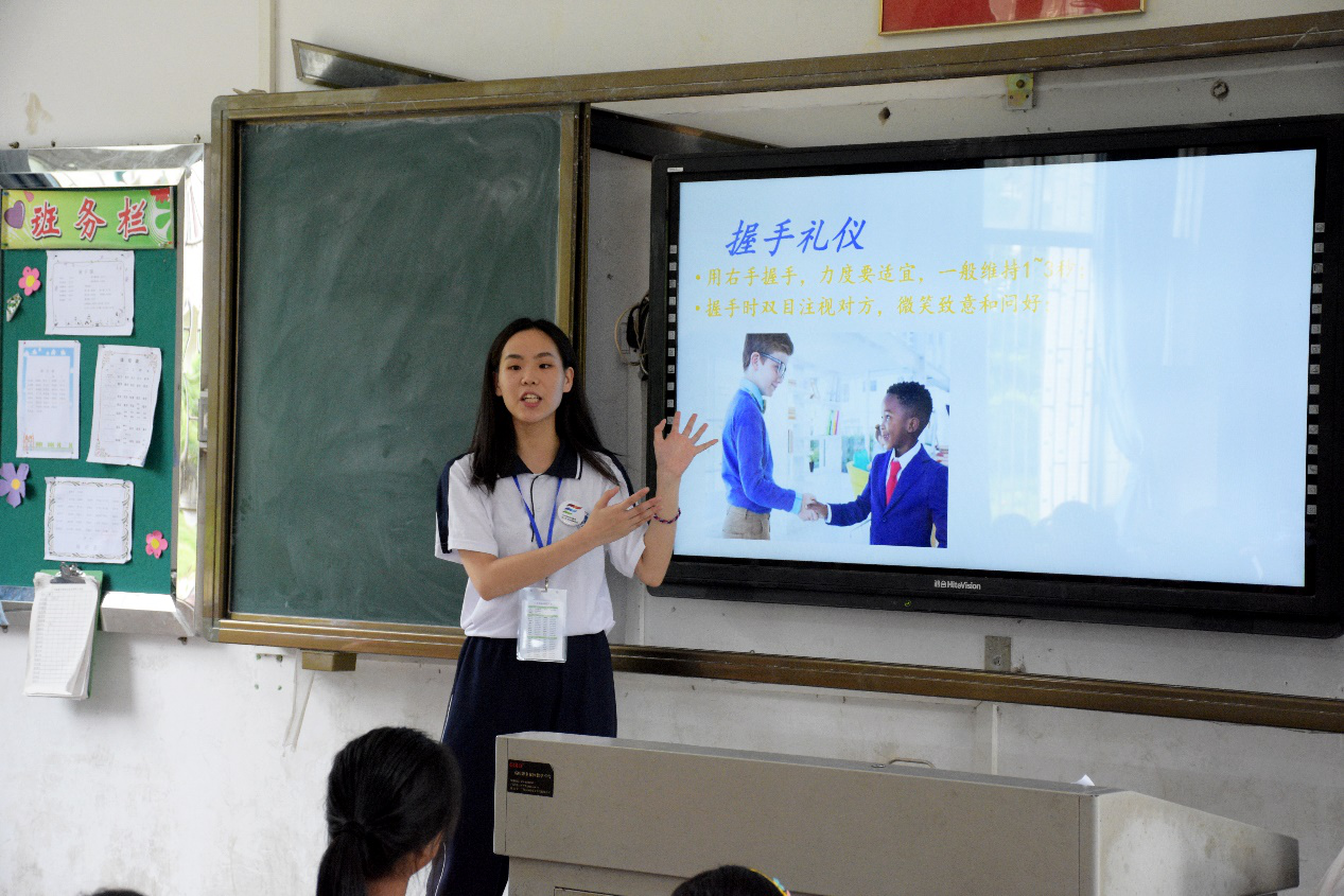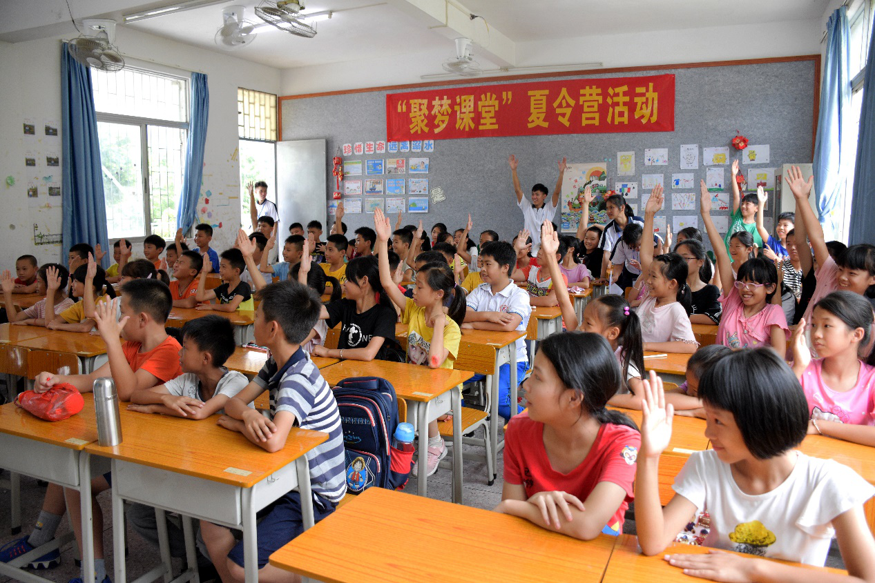 在“聚梦课堂”中,三下乡队员给大龙学校逸夫校区的小学生们准备了礼仪课和音乐课。三下乡队员希望通过“聚梦课堂”带给小学生们一些关于社交礼仪、餐桌文化和音乐的简谱、音阶、发音等方面的内容。课堂上,小学生们积极回答问题,特别是在音乐课堂上,小学生们的热情更为高涨。“聚梦课堂”通过讲授一些小学生比较感兴趣的课外知识,旨在丰富小学生的暑期生活,让他们的假期过的更有意义。
