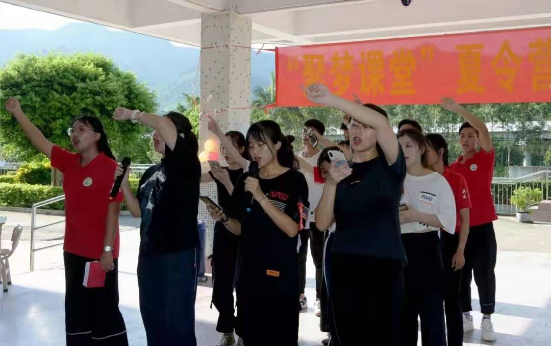 下午,志愿者为小朋友们精心准备了一场精彩纷呈的文艺汇演,并且邀请小朋友一起参与表演,增进彼此短暂但深刻的感情。文艺汇演以小朋友们的一曲合唱《够钟》拉开序幕,接着由志愿者带来的手语表演《感恩的心》、串烧歌曲《明明就淘汰》点燃了大家的热情,志愿者和小朋友的合唱《云烟成雨》也获得了阵阵喝彩,接下来志愿者的舞蹈《oh good》以及小品《唐伯虎点秋香》把文艺汇演推向了高潮,最终一曲全体大合唱《夜空中最亮的星》,以浓浓的温情和奋发的力量结束了本次汇演。文艺汇演结束后,现场举行了简单而隆重的“暑期三下乡夏令营”毕业典礼颁奖仪式,志愿者和小朋友们互相表达了心中的不舍与祝福。