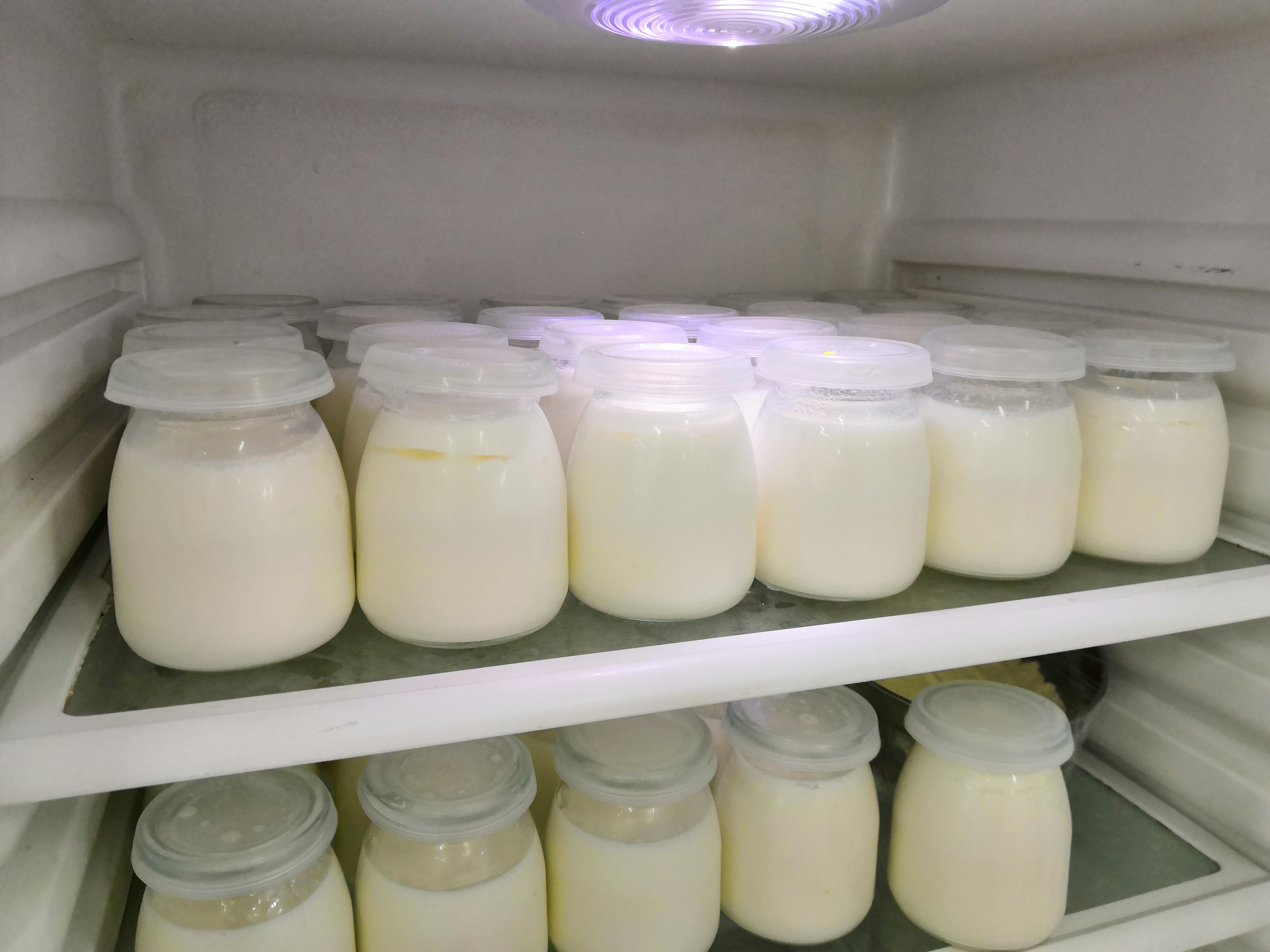酸奶的制作工艺流程包括:牛奶杀菌→瓶子清洗灭菌→灌装→接种密封→恒温发酵→冷藏。首先,将牛奶倒入锅中,加入砂糖,加热进行巴氏杀菌;接着,清洗玻璃瓶并高温灭菌;然后将杀菌后的牛奶加入到瓶子中;再添加适量的酸奶菌种,加盖密封;放入温箱中培养发酵数小时后取出;最后放到冰箱中冷藏保存即可。其中,关键控制环节是杀菌、接种以及发酵的温度和时间。在黄晓辰老师的细心指导下,同学们分工明确、协力互助,顺利地完成酸奶制作。