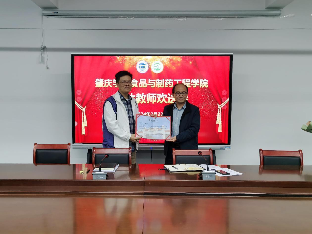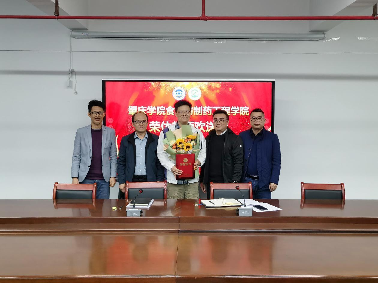 汪洪武院长代表学院向黄志明老师颁发荣休证书