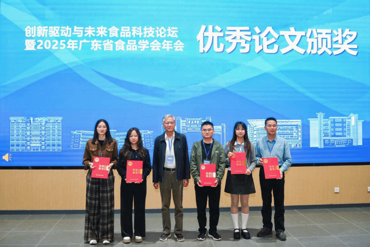 最后,汪洪武教授代表学会专家委员会宣布2025年广东省食品学会年会学术论文评审结果,共有5篇论文获得优秀奖。广州卓诚食品科技有限公司陈家文董事长为优秀论文作者代表颁发荣誉证书。