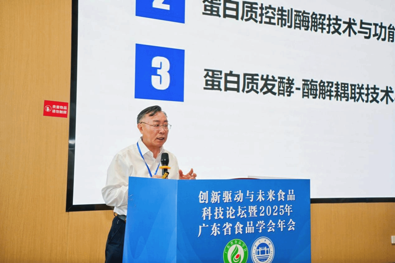 华南理工大学赵谋明教授的《蛋白质生物精深加工技术与应用》报告,围绕 “蛋白质控制酶解技术与功能性肽的开发” 和 “蛋白质发酵 —— 酶解耦联技术与呈味基料的开发” 展开分享。他提出,通过对蛋白质进行精深加工,提升蛋白质转化效率,挖掘蛋白质健康功能,对提高国民营养与健康水平具有重要意义。