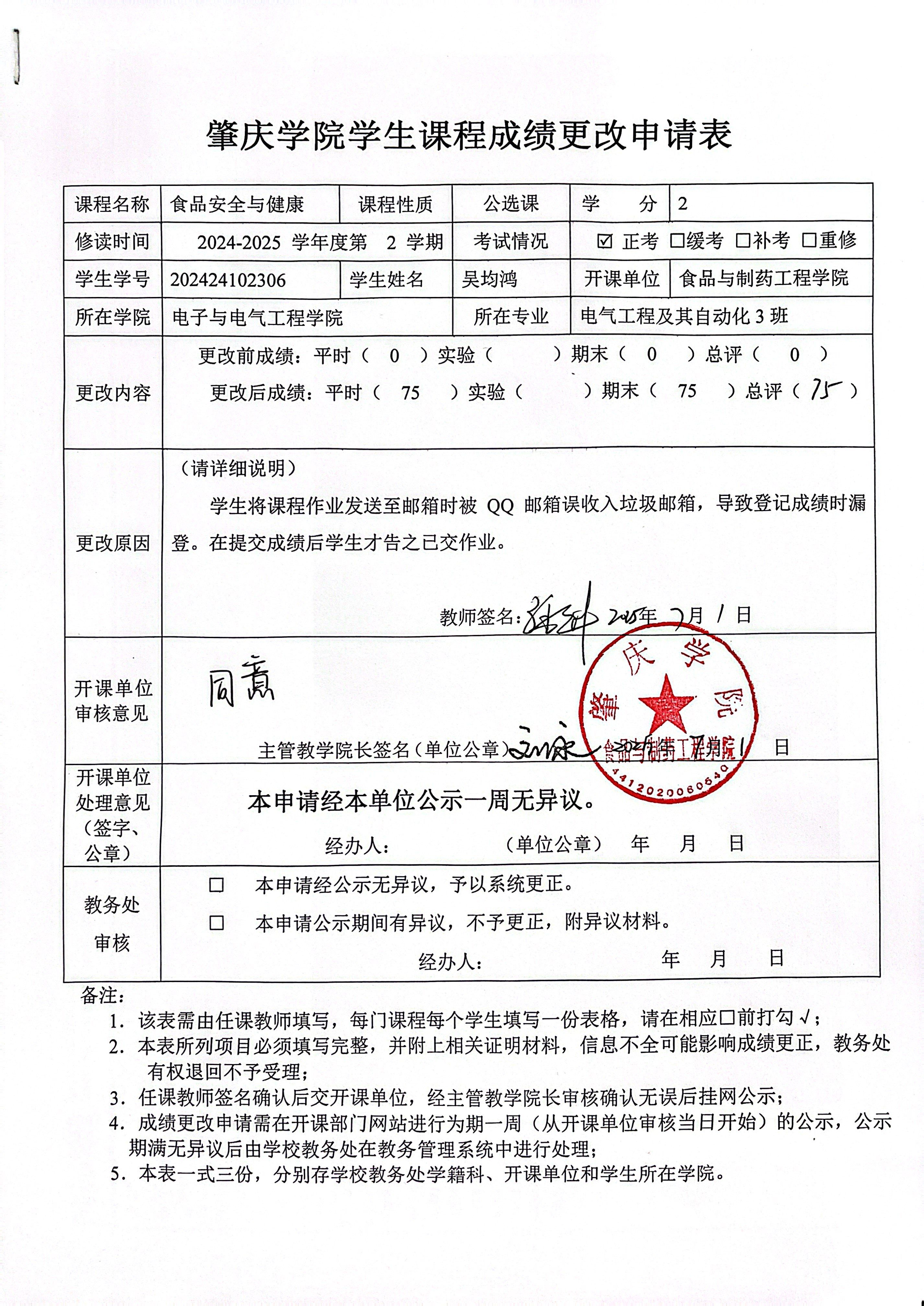 william威廉中文官网学生课程成绩更改申请表公示