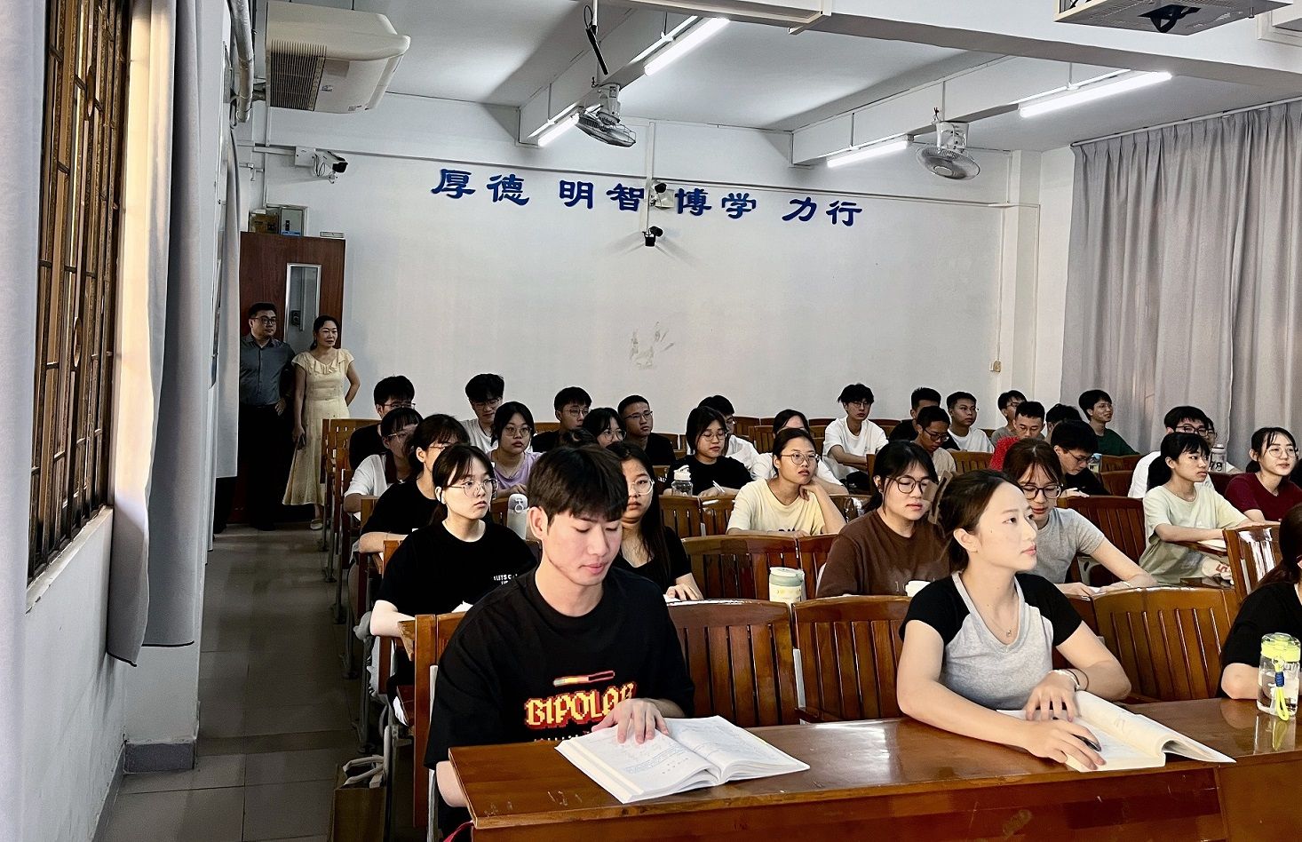 9月2日,在新学期开学首日,我院党委书记林晓忠、副书记肖燕,副院长马德运、刘永,联合我院教学督导教师、辅导员以及教学秘书,前往第一及第二教学楼,对新学期教学情况进行检查,涵盖了教师到岗情况、学生出勤状况、课堂表现、教学计划、课程大纲以及教材准备等多个方面。