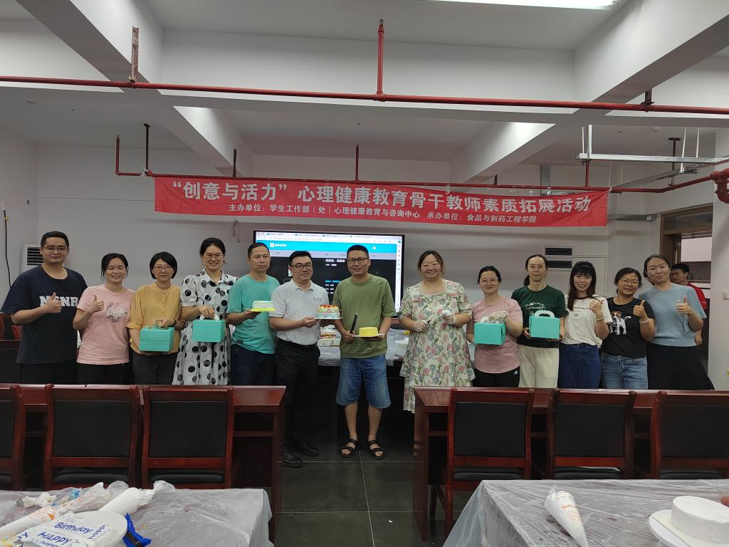 素质拓展活动现场气氛热烈,老师们用不同颜色的奶油、各种形状的饼干和多种多样的水果等材料进行蛋糕制作,在耐心沉稳的操作下,各种各样的蛋糕被制作的出来,骨干教师们体会到了此次心理活动的乐趣,也得到了压力缓解,促进了业务交流。